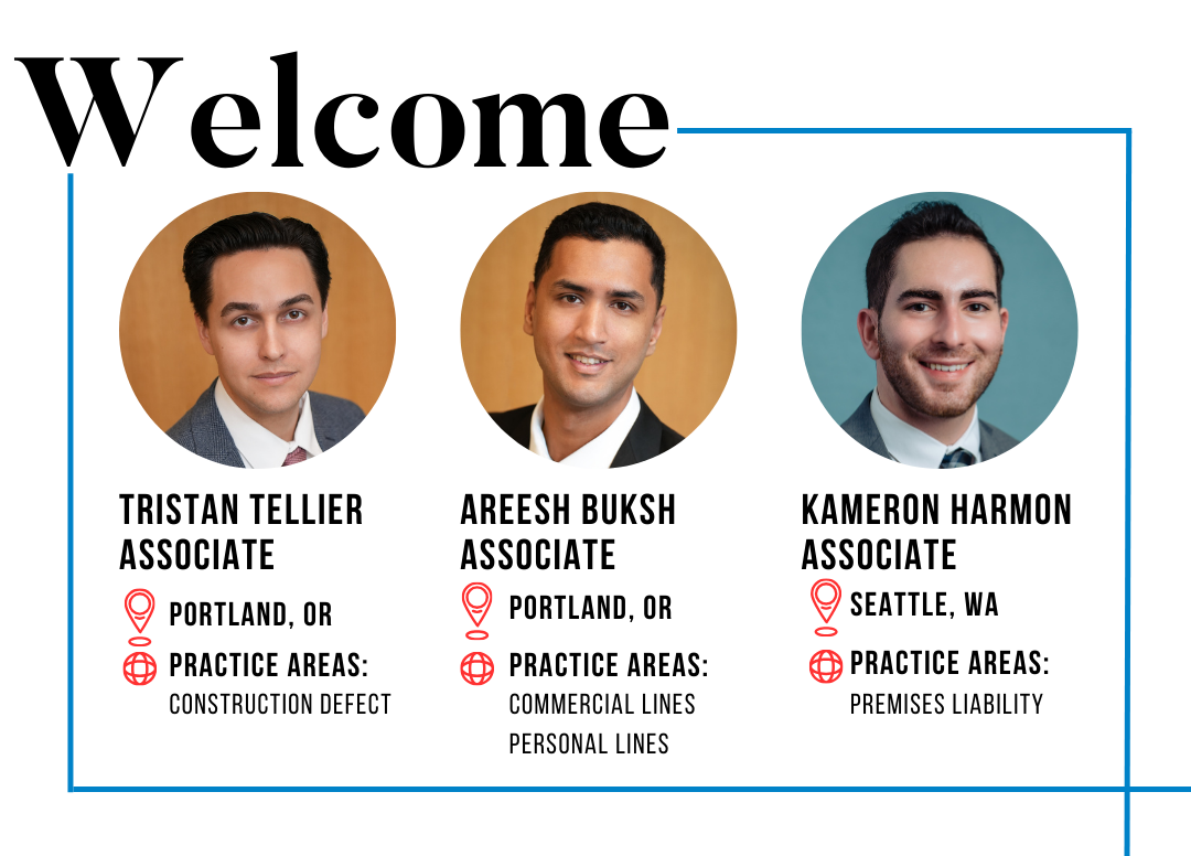 Please join us in welcoming, Tristan Tellier and Areesh Buksh to our Portland office and Kameron Harmon to our Seattle office – our newest Associate Attorneys at Smith Freed Eberhard!